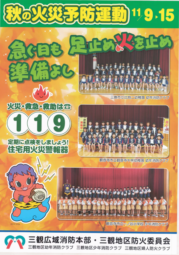 目的:この運動は、火災が発生しやすい時季を迎えるにあたり、火災予防思想の一層の普及を図り、もって火災の発生を防止し、高齢者を中心とする死者の発生を減少させるとともに、財産の損失を防ぐことを目的とする